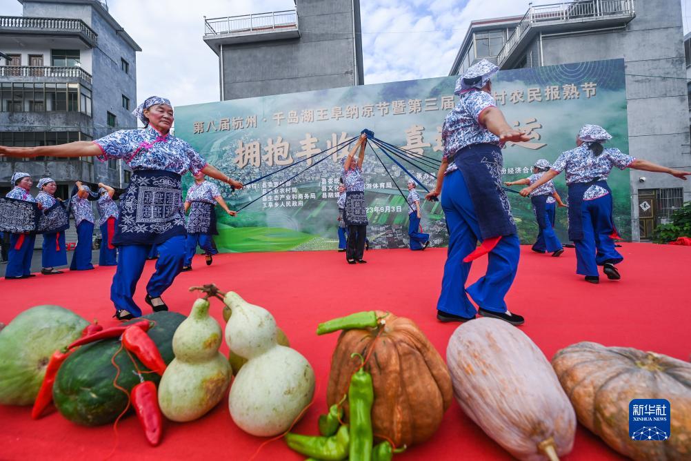 當日,一場(chǎng)別開(kāi)生面的“擁抱豐收·喜迎亞運·千島湖王阜農民報熟節”在浙江省淳安縣王阜鄉王阜村舉行。當地百姓參加了傳統巡游、村歌演唱、麻繡表演、果蔬競賽、美食及農特產(chǎn)品展銷(xiāo)會(huì )等活動(dòng)?!皥笫旃潯笔峭醺粪l每年金秋時(shí)節傳統的民俗節慶活動(dòng),慶祝一年勞作后喜獲豐收的幸福,這一習俗也被列入淳安縣非物質(zhì)文化遺產(chǎn)名錄。
