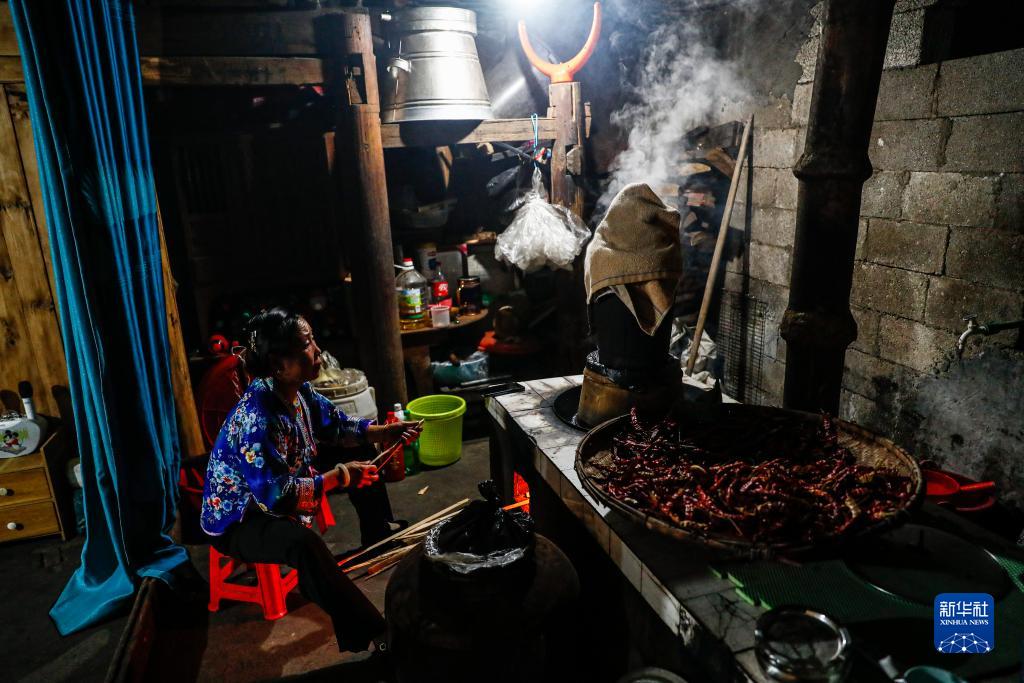 烏英苗寨婦女梁足英在蒸布(2023年8月30日攝)。新華社記者 胡星宇 攝