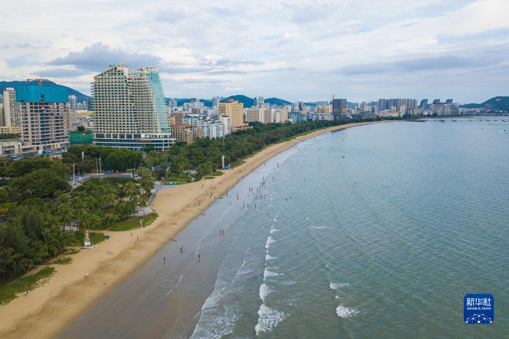 海南省三亞市三亞灣景色(無(wú)人機照片,8月30日攝)。三亞灣位于海南省三亞市主城區南部,海域面積75平方千米,是三亞市作為著(zhù)名旅游目的地的重要資源依托。