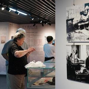 9月3日,參觀(guān)者在中國人民抗日戰爭紀念館觀(guān)看“烽煙號角——《晉察冀畫(huà)報》攝影文獻展”。
