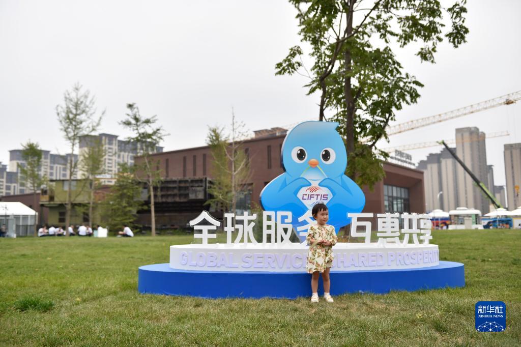 9月2日,在服貿會(huì )首鋼園區,小觀(guān)眾與“福燕”雕塑合影留念。