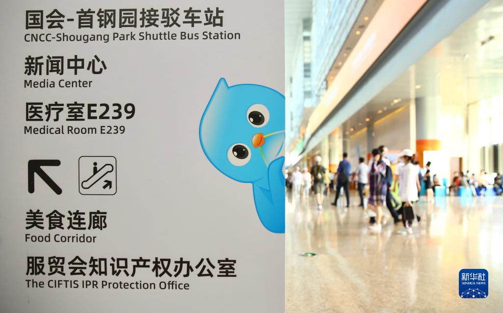 9月3日拍攝的國家會(huì )議中心的路標指示牌上的“福燕”。