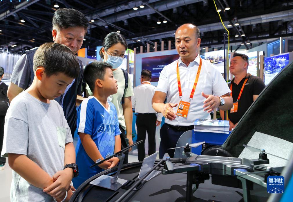 9月3日,參展商在國家會(huì )議中心向參觀(guān)者介紹無(wú)人機球形機巢。