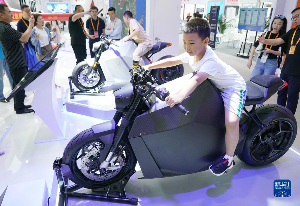 9月3日,一名小朋友在首鋼園體驗電動(dòng)摩托車(chē)。