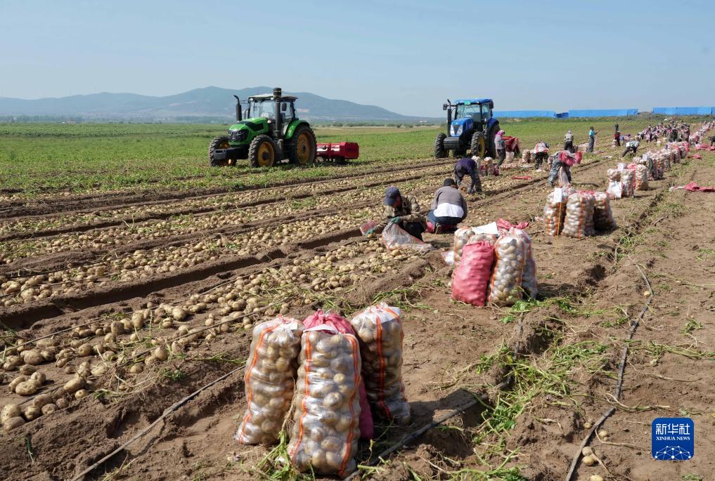 9月3日,河北省圍場(chǎng)滿(mǎn)族蒙古族自治縣御道口鎮御道口村一家馬鈴薯種植合作社社員在收獲馬鈴薯。