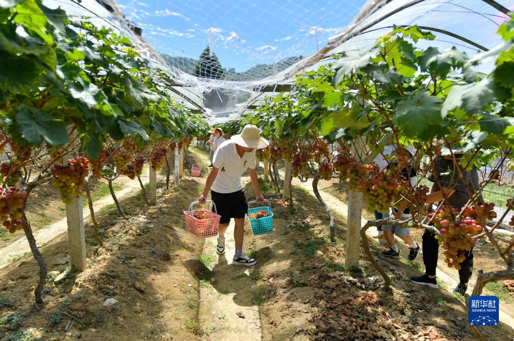 9月3日,游客在湖北省宣恩縣椒園鎮一采摘園里采摘葡萄。