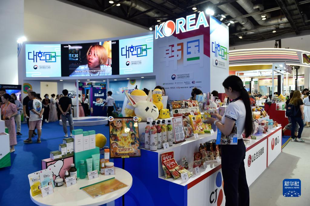 9月4日,在服貿會(huì )國家會(huì )議中心的韓國展臺,觀(guān)眾在挑選商品。