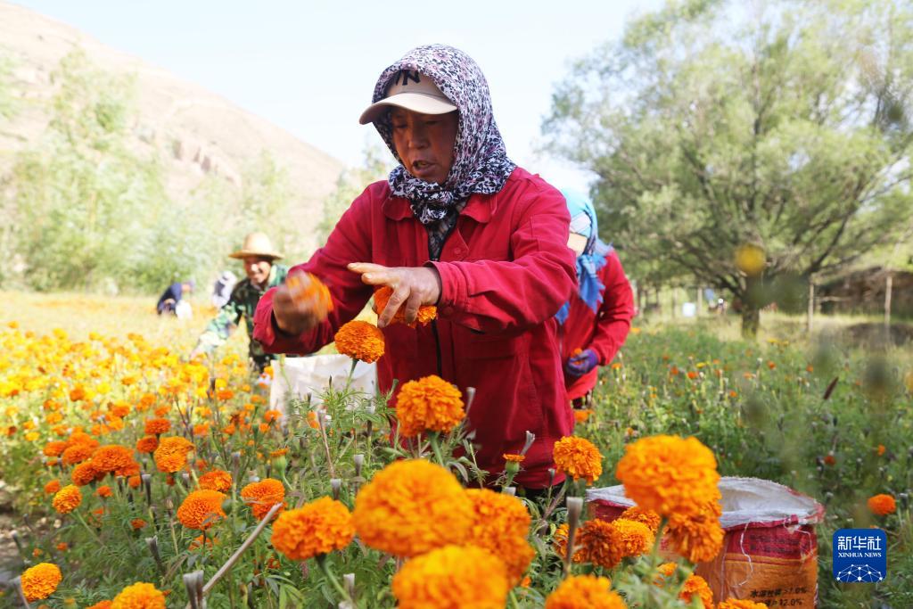 初秋時(shí)節,甘肅省定西市隴西縣4萬(wàn)畝萬(wàn)壽菊進(jìn)入采摘期,農民們趁著(zhù)晴好天氣采摘、裝車(chē)、出售,田間地頭一派忙碌景象。