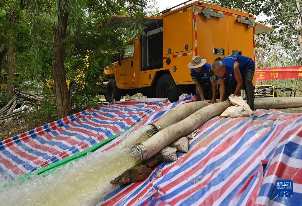 9月5日,排水作業(yè)人員在天津市西青區辛口鎮第六埠村檢查排水管道。