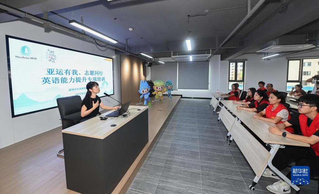 當日,浙江省湖州市吳興區道場(chǎng)鄉在湖山府社區黨群服務(wù)中心組織開(kāi)展“亞運有我、志愿同行”新時(shí)代文明實(shí)踐志愿服務(wù)培訓班,由年輕黨員、退役軍人、社會(huì )工作者、居民群眾等共同組成亞運志愿服務(wù)隊,圍繞語(yǔ)言能力、急救技能、助殘服務(wù)、應急救援等進(jìn)行理論和實(shí)操培訓。