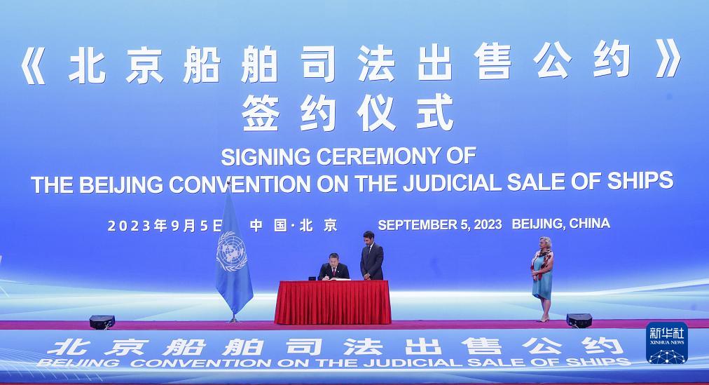 當日,《北京船舶司法出售公約》簽約儀式在北京舉行。據了解,這是海商領(lǐng)域首個(gè)以中國城市命名的聯(lián)合國公約。共有34個(gè)國家和地區的代表團來(lái)京參加簽約儀式,包括中國、瑞士、新加坡、沙特阿拉伯、利比里亞、洪都拉斯等在內的15個(gè)國家和地區成為公約的首批簽約方。