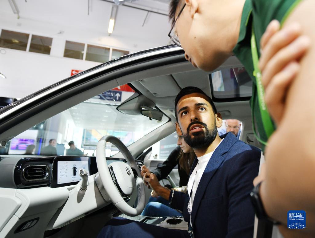 9月5日,在德國慕尼黑,參觀(guān)者在德國國際汽車(chē)及智慧出行博覽會(huì )的零跑汽車(chē)展區與工作人員交流。