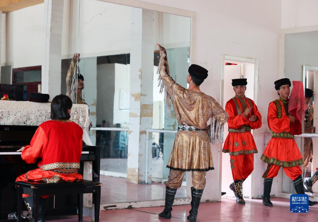 在新疆塔什庫爾干塔吉克自治縣帕米爾旅游區游客服務(wù)中心,縣文工團演員在演出前做準備(9月4日攝)。