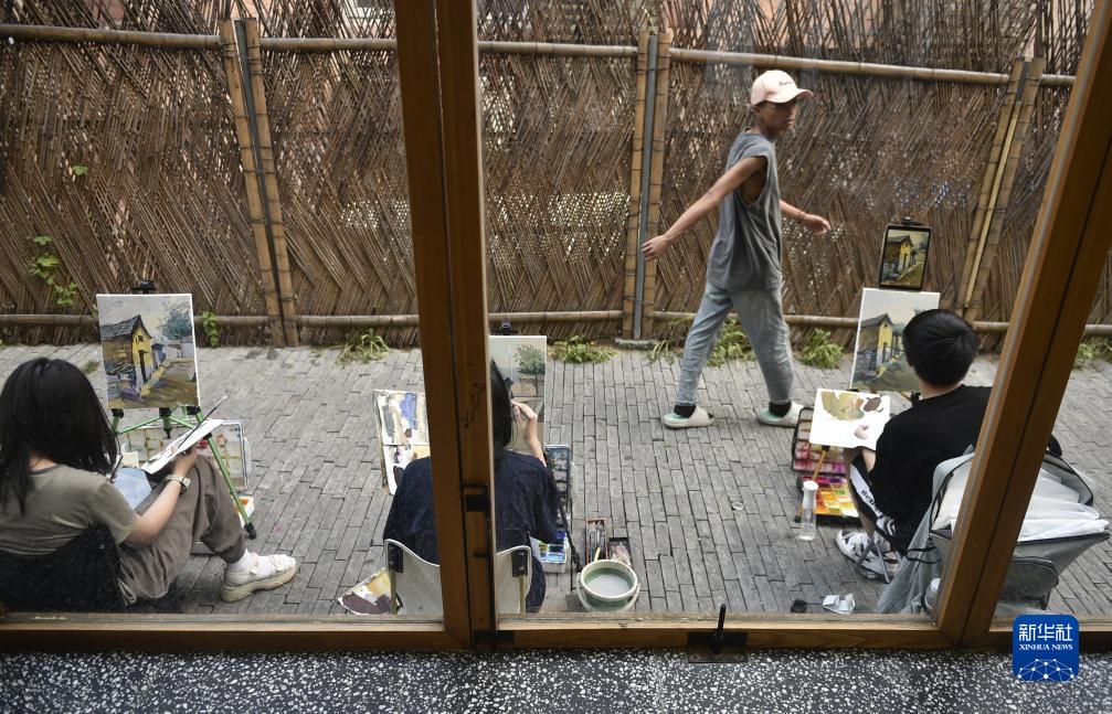 9月5日,學(xué)生在林州市石板巖鎮寫(xiě)生。