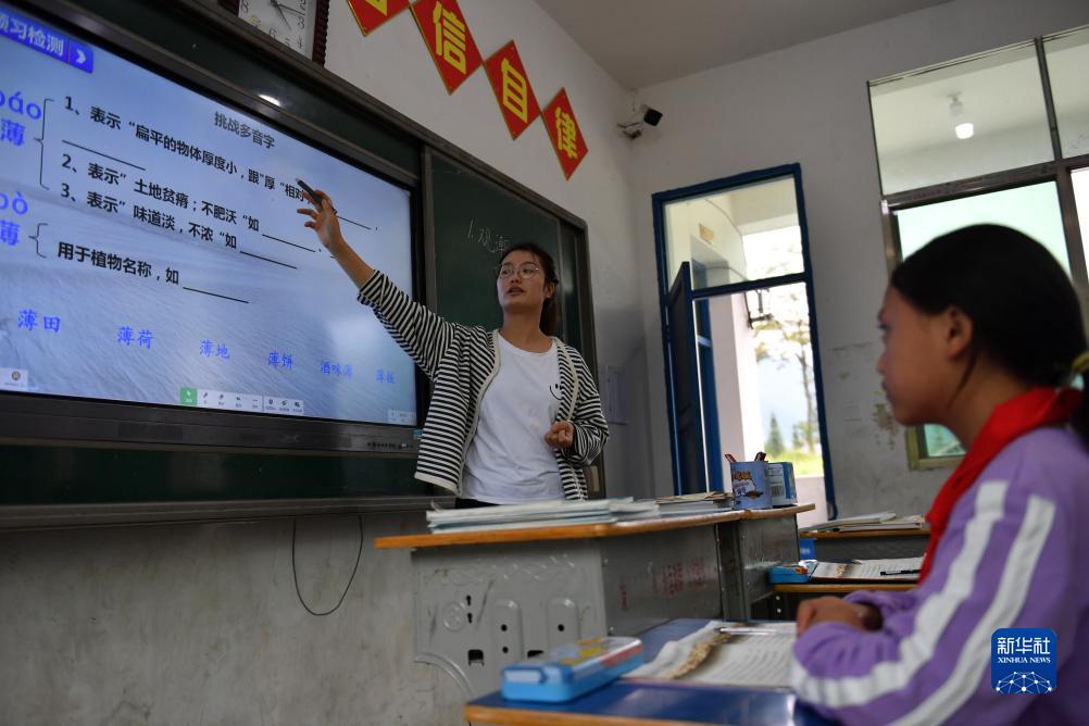 9月4日,報木小學(xué)的教師劉鳳英在給四年級學(xué)生上課。