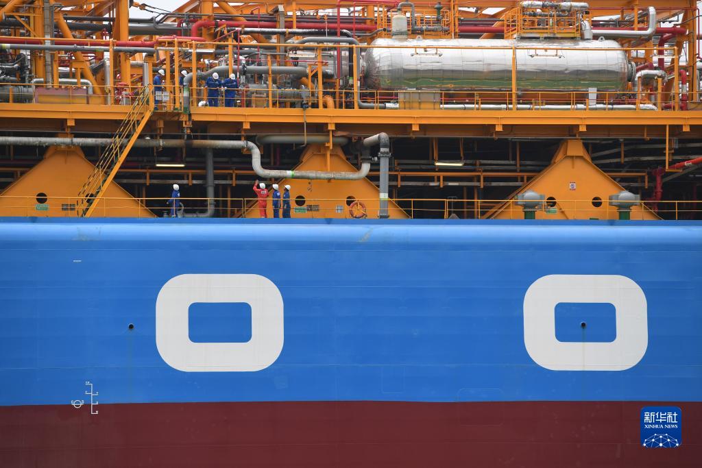 9月6日,在深圳孖洲島的友聯(lián)船廠(chǎng),工作人員在“南海奮進(jìn)”FPSO出發(fā)前檢查設施設備情況。