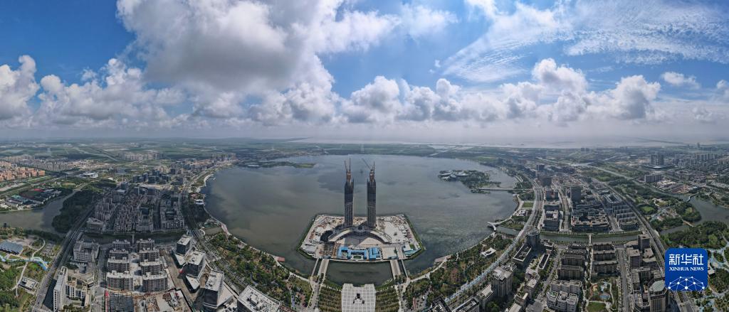 9月6日拍攝的臨港西島中銀金融中心項目建設工地(無(wú)人機照片)。