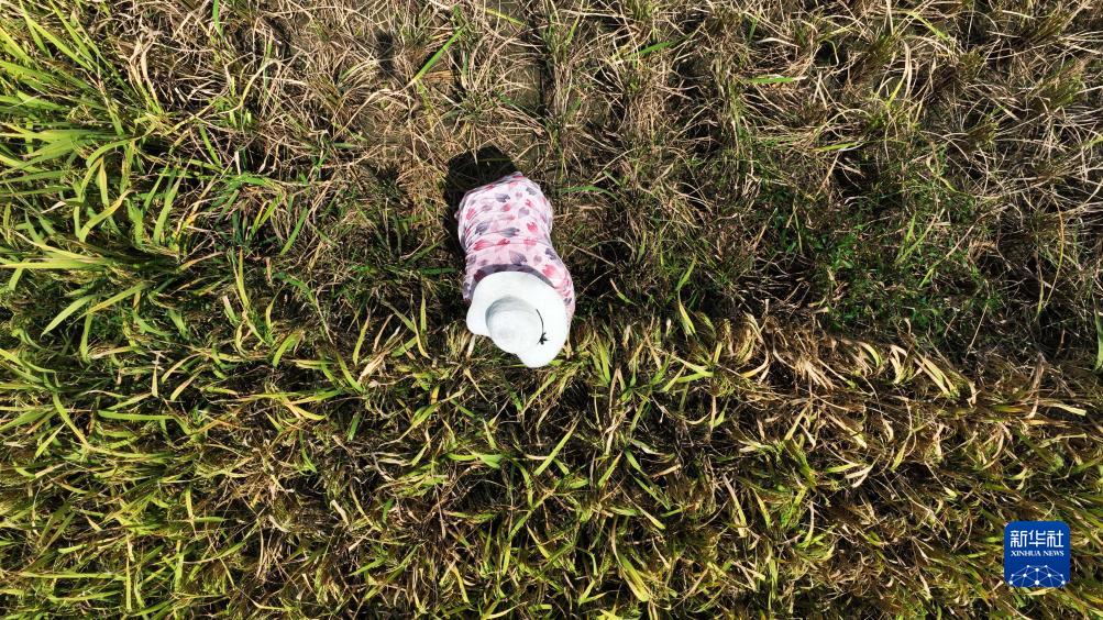 9月6日,村民在貴州省黔東南苗族侗族自治州黃平縣舊州鎮萬(wàn)畝大壩搶收稻谷(無(wú)人機照片)。