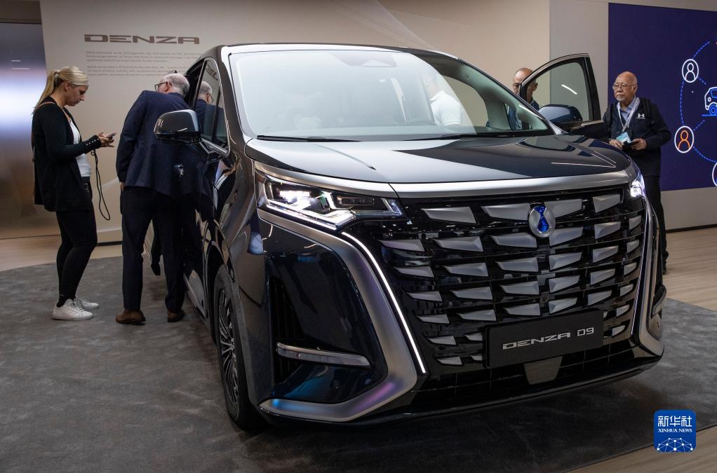 9月4日,在德國慕尼黑國際車(chē)展媒體預展上,人們在比亞迪品牌發(fā)布會(huì )現場(chǎng)體驗騰勢D9汽車(chē)。