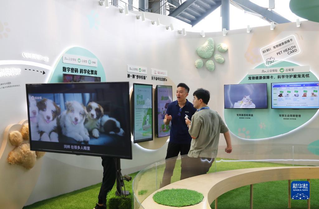 9月7日,參觀(guān)者在外灘大會(huì )展覽區寵物之家展臺內交流討論。