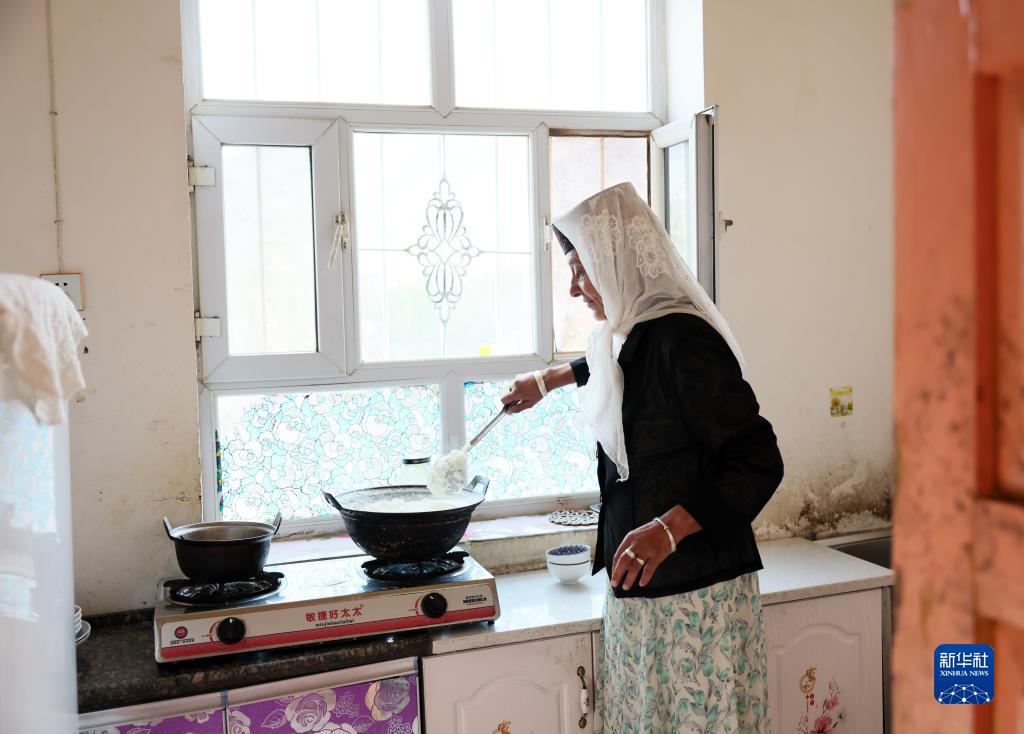 拜合提亞爾·居馬汗的母親在家中做晚飯(9月4日攝)。