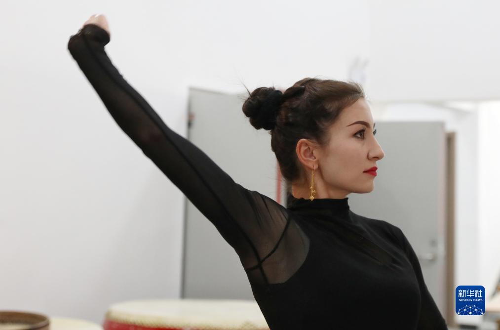 古麗巴努爾·庫爾恰克在排練前拉伸身體(9月4日攝)。
