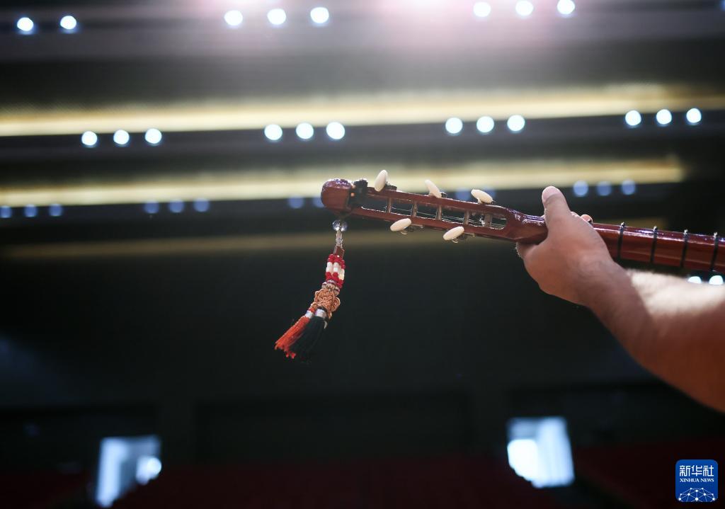 一名新疆塔縣文工團樂(lè )手在排練時(shí)彈奏熱瓦普(9月4日攝)。新華社記者 蘭紅光 攝