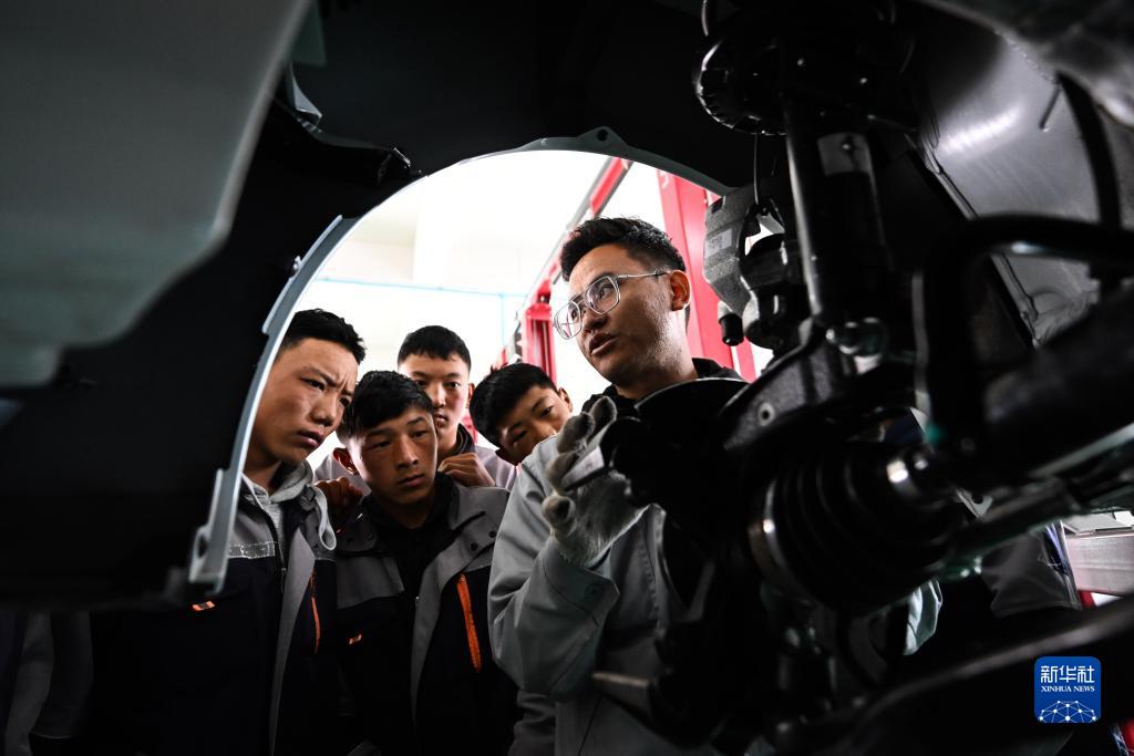 9月8日,在果洛藏族自治州職業(yè)技術(shù)學(xué)校,汽車(chē)運用與維修專(zhuān)業(yè)學(xué)生在實(shí)訓課程上學(xué)習。