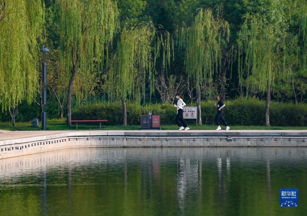 9月7日,市民在德州市長(cháng)河公園跑步。