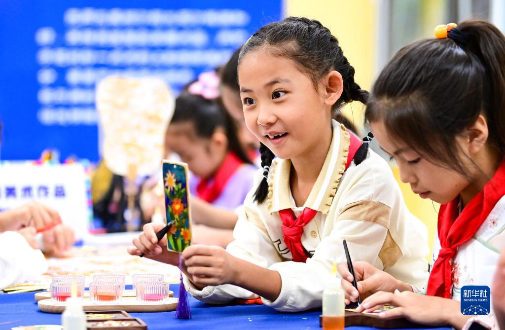 當日,內蒙古鄂爾多斯市康巴什區第八小學(xué)舉辦“賽技藝 美童年”主題美術(shù)作品創(chuàng )意比賽,學(xué)生創(chuàng )作景泰藍、瀝粉畫(huà)、泥塑等美術(shù)作品,展現藝術(shù)巧思與創(chuàng )意。近年來(lái),康巴什區通過(guò)“一校一品”特色課堂建設,將美術(shù)、音樂(lè )、戲曲等納入課后服務(wù)內容,讓優(yōu)秀傳統文化浸潤童心,助力學(xué)生健康快樂(lè )成長(cháng)。