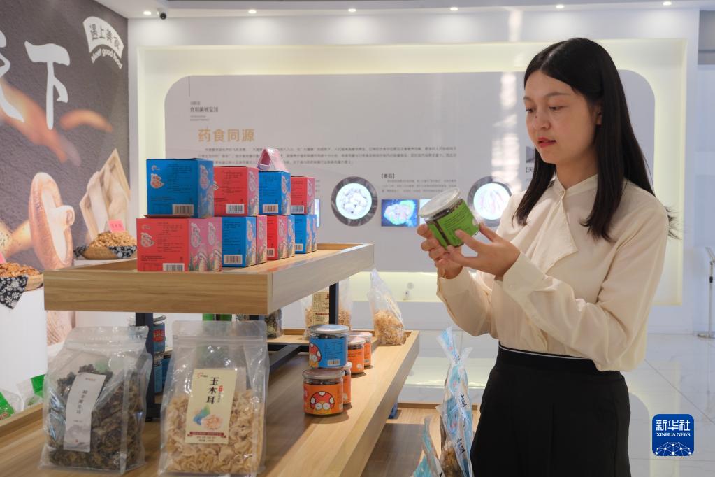 9月8日,消費者在山陽(yáng)縣食用菌產(chǎn)業(yè)園商品展示大廳挑選產(chǎn)品。
