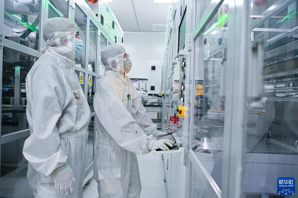 工作人員在蜂巢能源科技(鹽城)有限公司生產(chǎn)車(chē)間內操作智能生產(chǎn)設備(9月8日攝)。