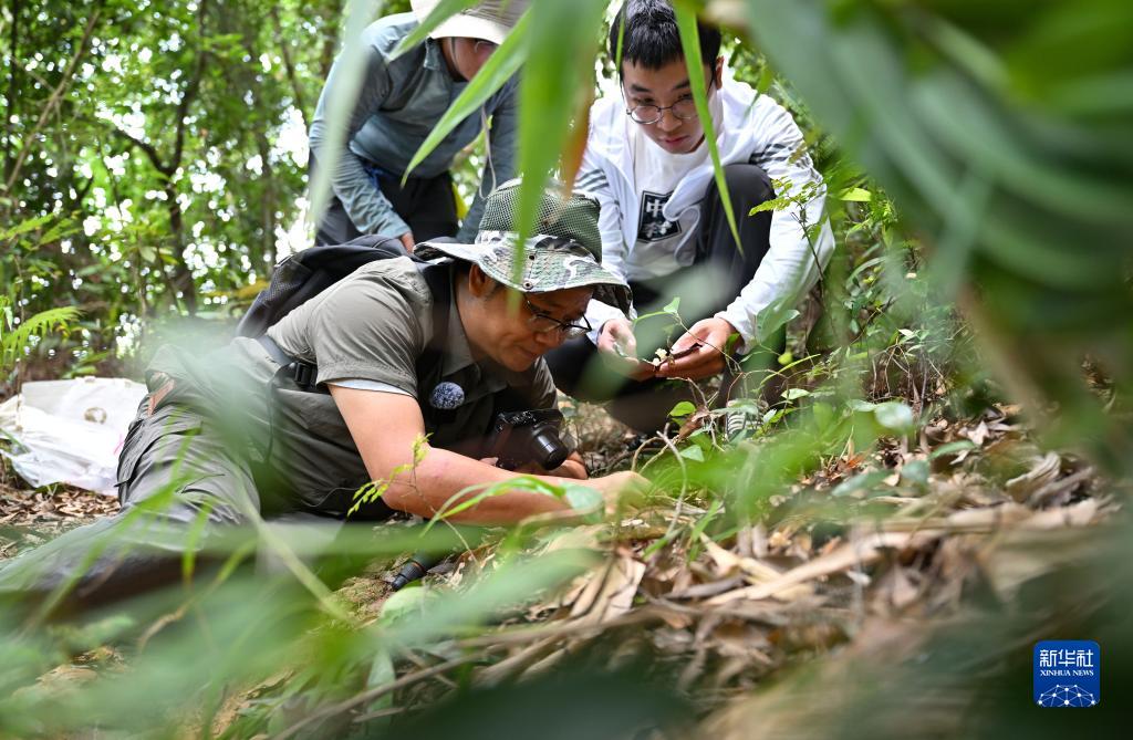 9月5日,曾念開(kāi)和學(xué)生在海南鸚哥嶺熱帶雨林拍攝菌類(lèi)。