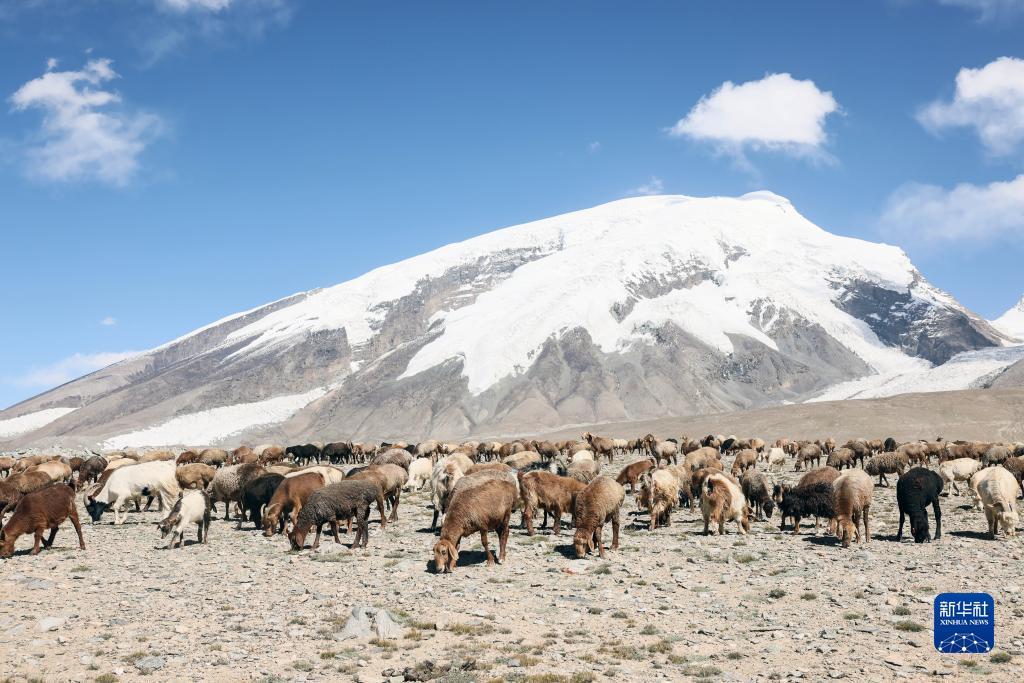 在“冰川之父”慕士塔格峰腳下,新疆塔什庫爾干塔吉克自治縣塔合曼鄉境內的一片天然草場(chǎng)吸引周邊鄉村的牧羊人在此放牧。進(jìn)入秋季以來(lái),草場(chǎng)漸漸泛黃,屹立于遠處的慕士塔格峰和公格爾九別峰在藍天白云的映襯下格外壯美,一幅寧靜悠遠的牧羊圖引人入勝。