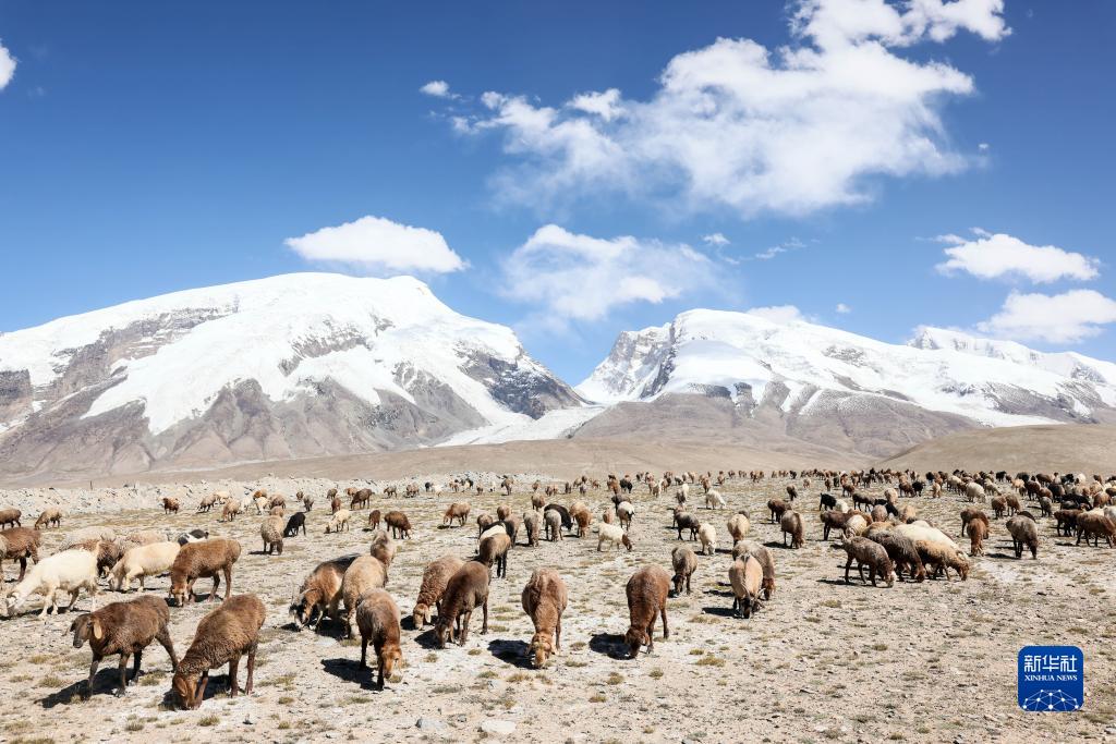 在“冰川之父”慕士塔格峰腳下,新疆塔什庫爾干塔吉克自治縣塔合曼鄉境內的一片天然草場(chǎng)吸引周邊鄉村的牧羊人在此放牧。進(jìn)入秋季以來(lái),草場(chǎng)漸漸泛黃,屹立于遠處的慕士塔格峰和公格爾九別峰在藍天白云的映襯下格外壯美,一幅寧靜悠遠的牧羊圖引人入勝。