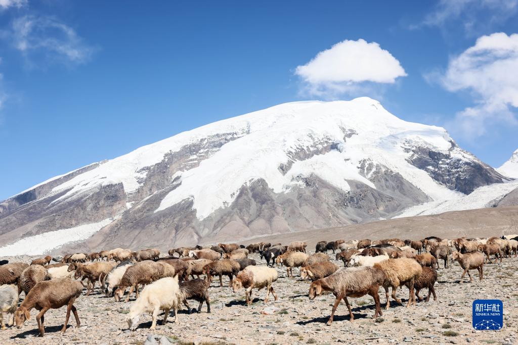 在“冰川之父”慕士塔格峰腳下,新疆塔什庫爾干塔吉克自治縣塔合曼鄉境內的一片天然草場(chǎng)吸引周邊鄉村的牧羊人在此放牧。進(jìn)入秋季以來(lái),草場(chǎng)漸漸泛黃,屹立于遠處的慕士塔格峰和公格爾九別峰在藍天白云的映襯下格外壯美,一幅寧靜悠遠的牧羊圖引人入勝。