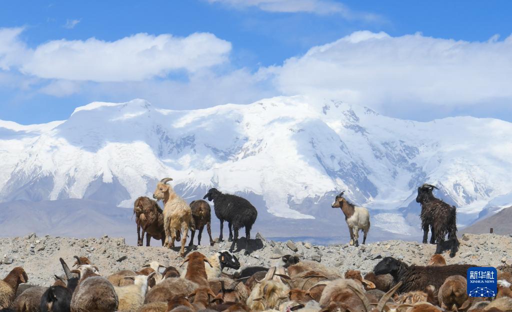 在“冰川之父”慕士塔格峰腳下,新疆塔什庫爾干塔吉克自治縣塔合曼鄉境內的一片天然草場(chǎng)吸引周邊鄉村的牧羊人在此放牧。進(jìn)入秋季以來(lái),草場(chǎng)漸漸泛黃,屹立于遠處的慕士塔格峰和公格爾九別峰在藍天白云的映襯下格外壯美,一幅寧靜悠遠的牧羊圖引人入勝。