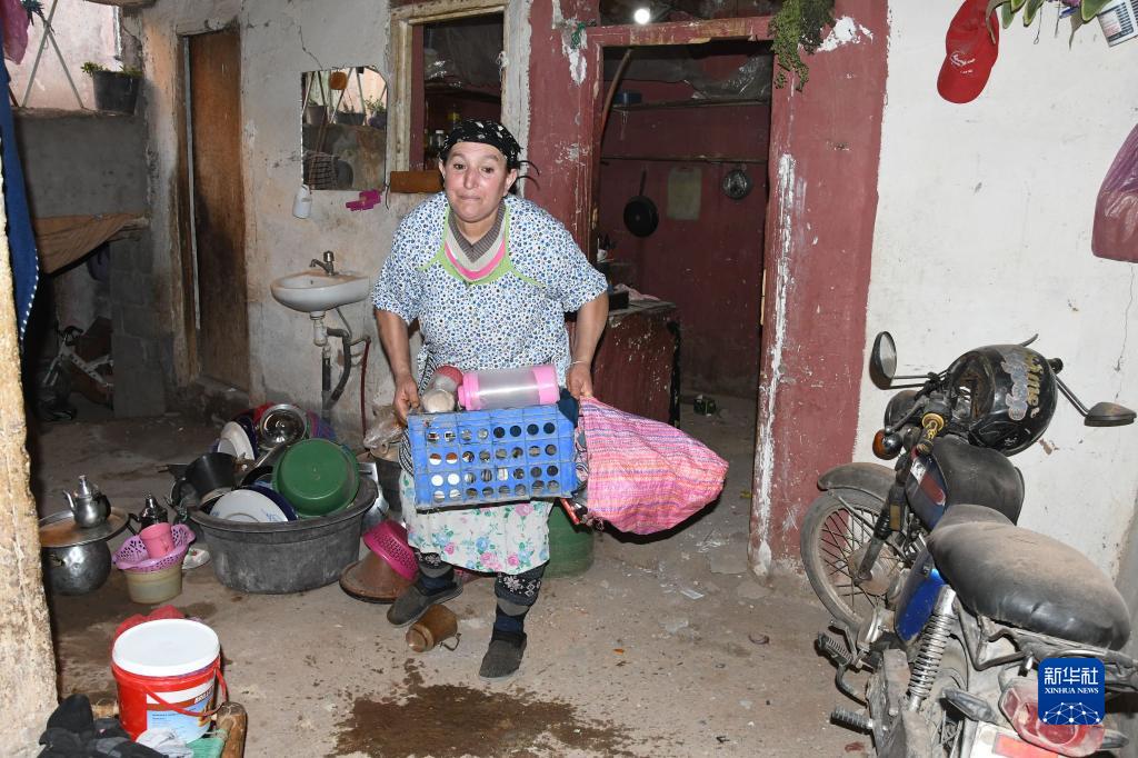9月9日,在摩洛哥馬拉喀什附近,居民在家中進(jìn)行清理善后工作。
