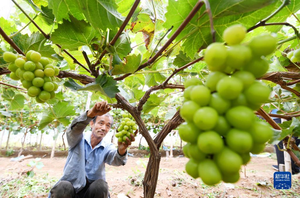 9月10日,河北省石家莊市深澤縣杜社村農民在采收葡萄。