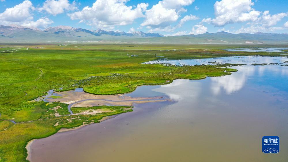這是8月22日在四川省阿壩藏族羌族自治州若爾蓋縣拍攝的花湖(無(wú)人機照片)。