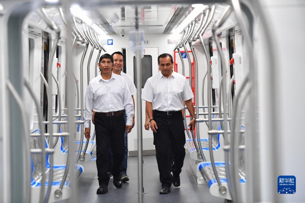 墨西哥來(lái)賓在中國中車(chē)出口墨西哥城輕軌列車(chē)首列車(chē)內參觀(guān)(9月9日攝)。