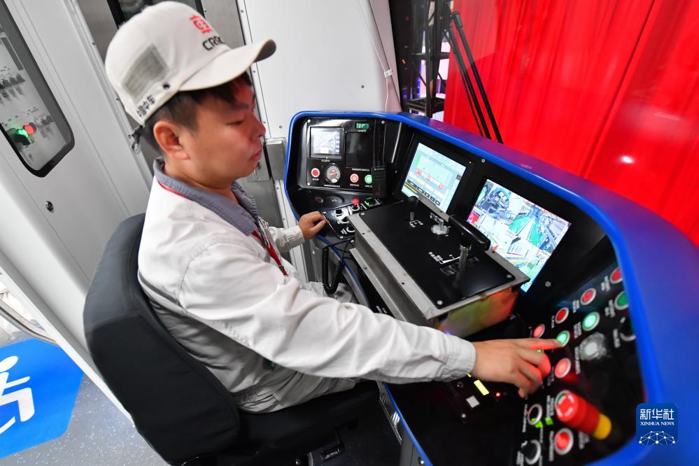 中車(chē)株機公司工作人員在中國中車(chē)出口墨西哥城輕軌列車(chē)首列車(chē)內巡檢(9月9日攝)。