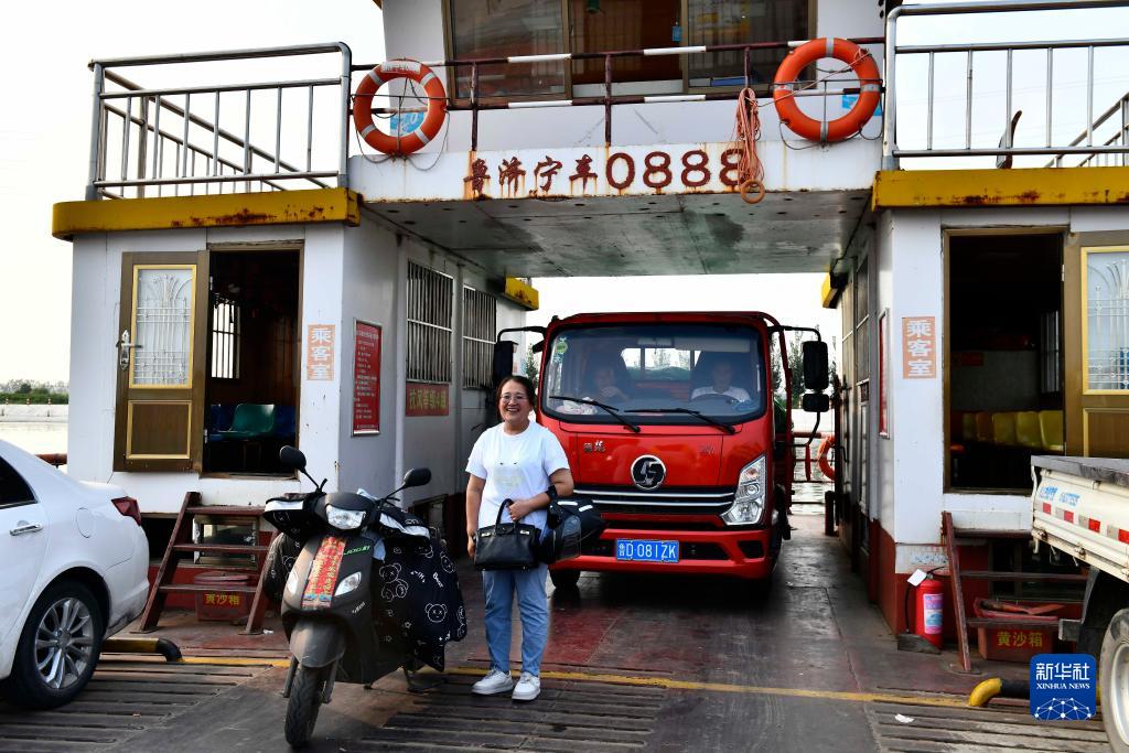 9月5日,微山縣高樓鄉渭河小學(xué)老師閆治羽放學(xué)后乘輪渡回家。