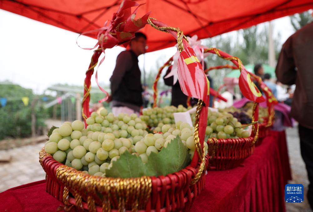 當日,寧夏青銅峽市大壩鎮2023年中國農民豐收節暨首屆上灘村大青葡萄采摘節在大壩鎮上灘村舉行。據了解,依托黃河灌區優(yōu)良的沙質(zhì)土壤和黃河水的灌溉等優(yōu)勢,當地農戶(hù)種植大青葡萄430多畝,葡萄種植產(chǎn)業(yè)已成為當地農民致富增收的“香甜產(chǎn)業(yè)”。