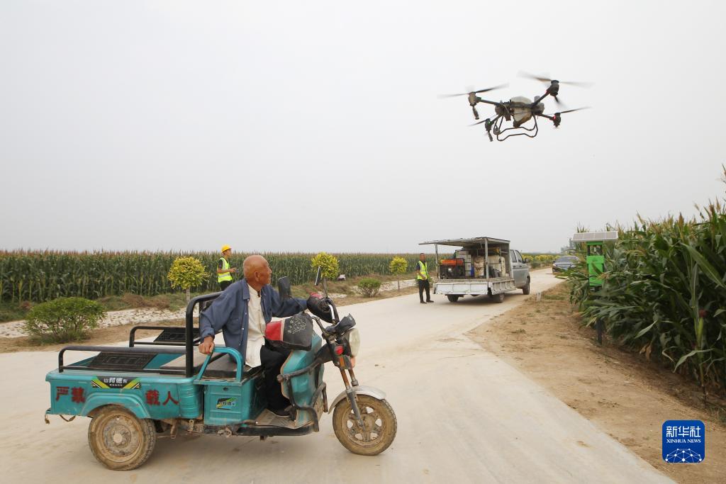 9月9日,樂(lè )陵市孔鎮鎮飛防作業(yè)社會(huì )化服務(wù)團隊在“噸半糧”核心區內進(jìn)行飛防。