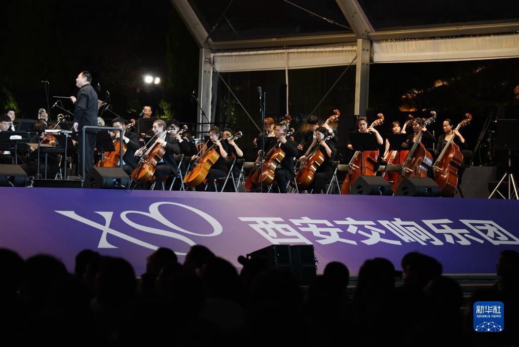 9月10日晚,西安交響樂(lè )團在西安大雁塔北廣場(chǎng)戶(hù)外公演。