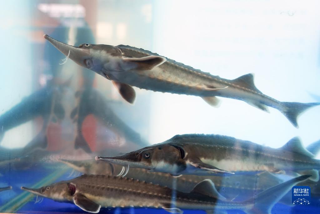 9月11日在第三十屆中國北京種業(yè)大會(huì )種業(yè)振興成果展現場(chǎng)拍攝的雜交鱘“京龍1號”。