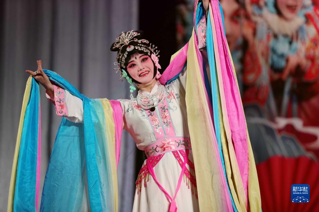 9月9日,婺劇演員在埃塞俄比亞首都亞的斯亞貝巴表演《天女散花》。