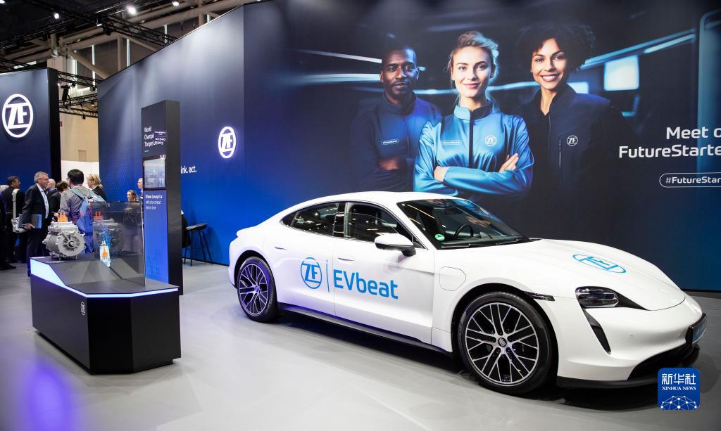 這是9月4日在德國慕尼黑舉行的2023年德國國際汽車(chē)及智慧出行博覽會(huì )媒體預展上拍攝的采埃孚展區。