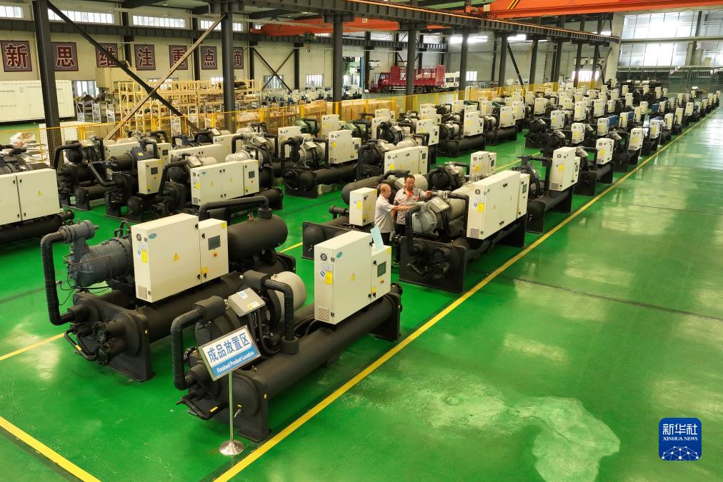 9月12日,工作人員在位于滄州市的河北益民五金制造股份有限公司成品區對地源熱泵機組進(jìn)行出廠(chǎng)前全面核對。